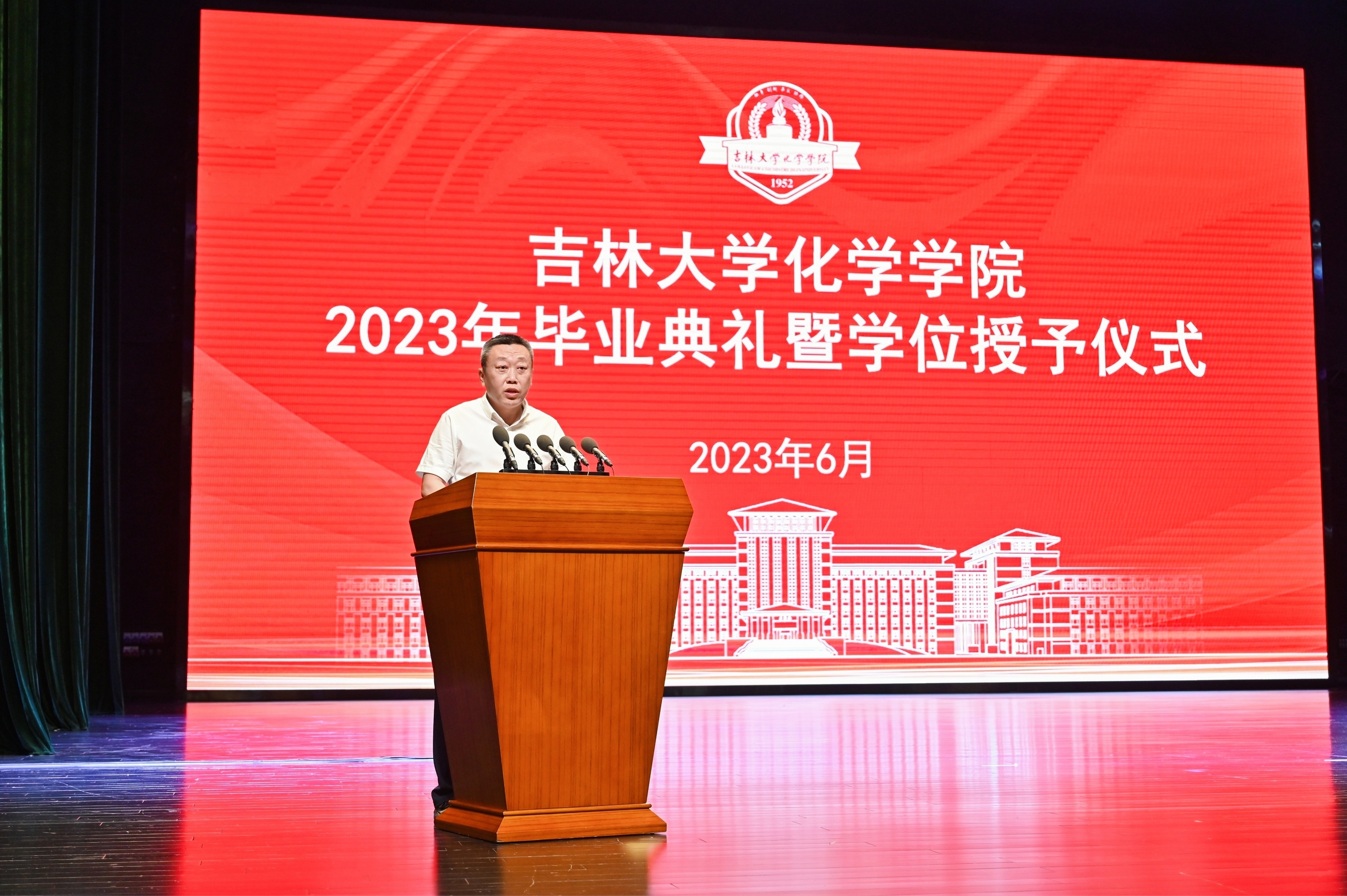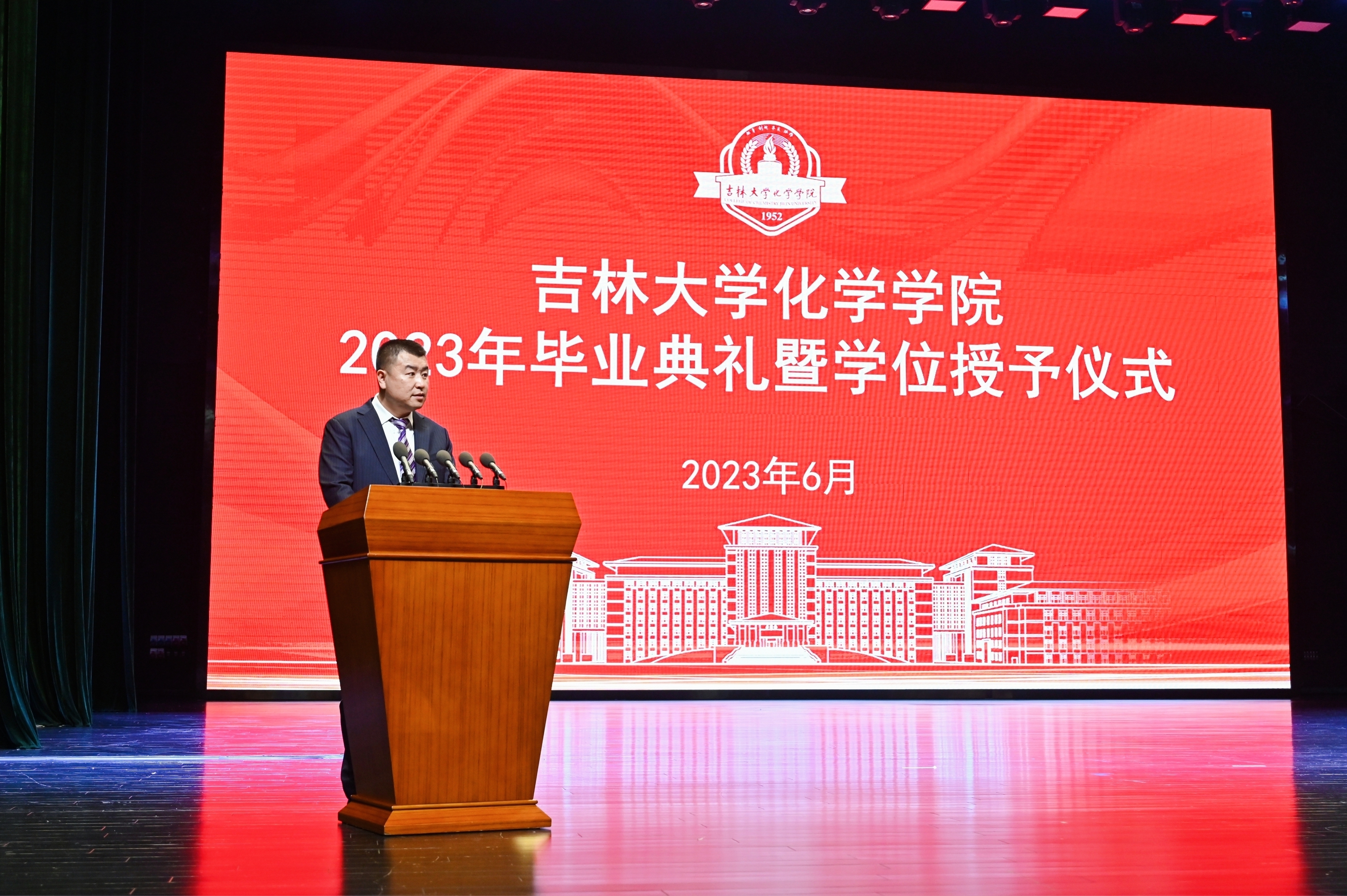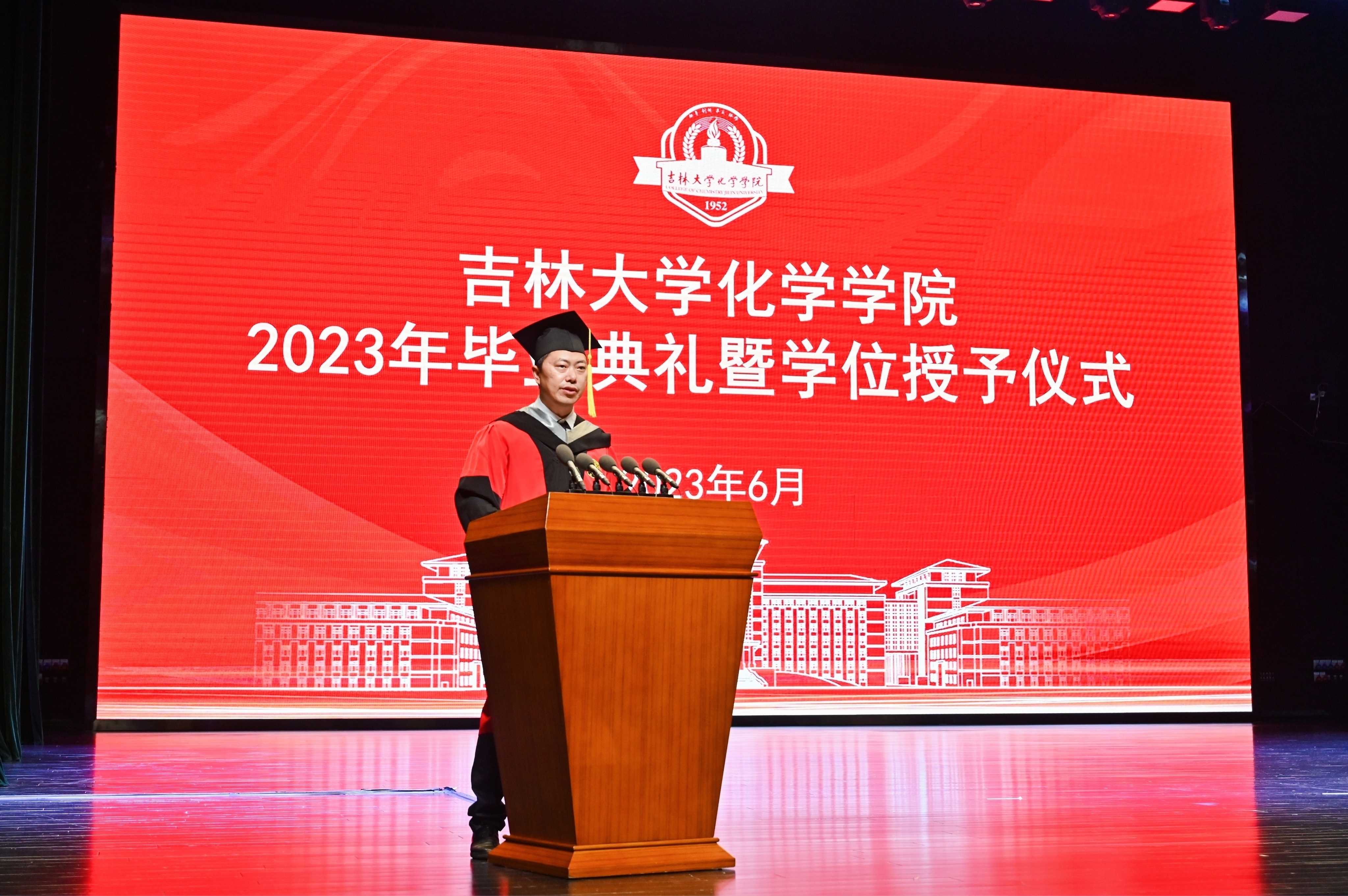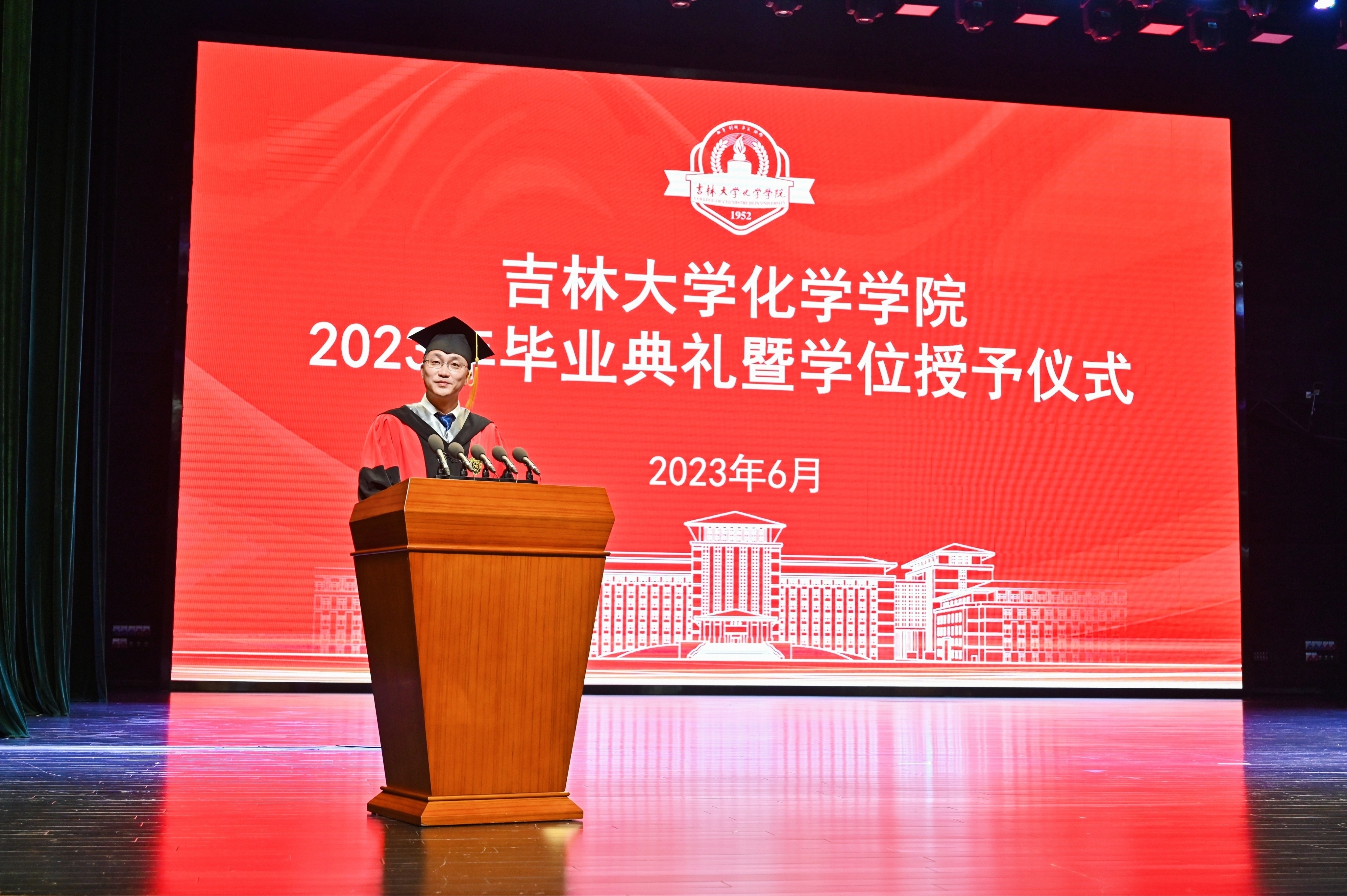 2023届毕业研究生代表、吉林大学2023届优秀毕业研究生迟茜文发言中深情回忆了在学校求学的美好时光,深深表达了对母校师生的恋恋不舍。她表示,吉大化学是一本书,既博大又包容,既严谨又谦和。吉大化学是一座城,这里永远住着怀揣梦想的人,每一个在这里生活过的人都用自己的时光温暖着她的岁月,都用自己的实际行动守卫着她的荣耀和尊严。她代表全体毕业生为学院送上了最真挚的祝福。