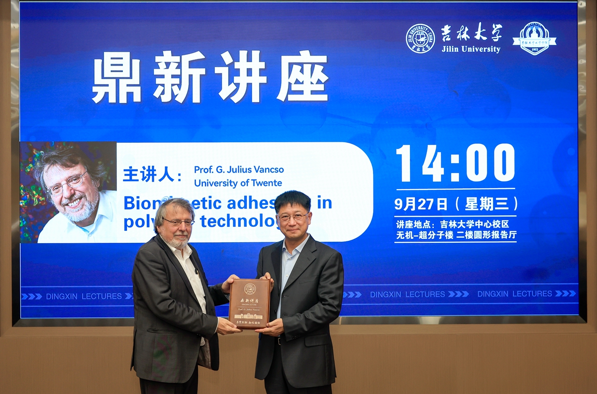 【新闻来源:吉林大学欧洲杯网站】9月27日下午,匈牙利科学院院士、英国皇家化学学会会士、荷兰特文特大学教授G. Julius Vancso应邀作为“吉林大学2023全球讲座计划”系列活动的学术大师,在中心校区无机-超分子楼二楼圆形报告厅做客吉林大学鼎新讲座,以“Towards biomimetic adhesives in polymer technology: The combat with marine fouling and some lessons to learn”为题为学校师生带来一场精彩的学术讲座。中国科学院院士、吉林大学校长张希出席讲座并为Vancso教授颁发鼎新讲座纪念牌。欧洲杯