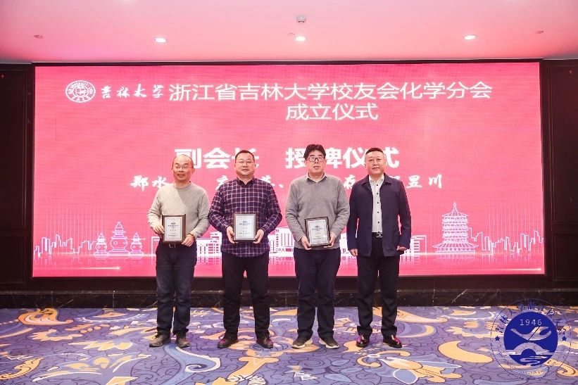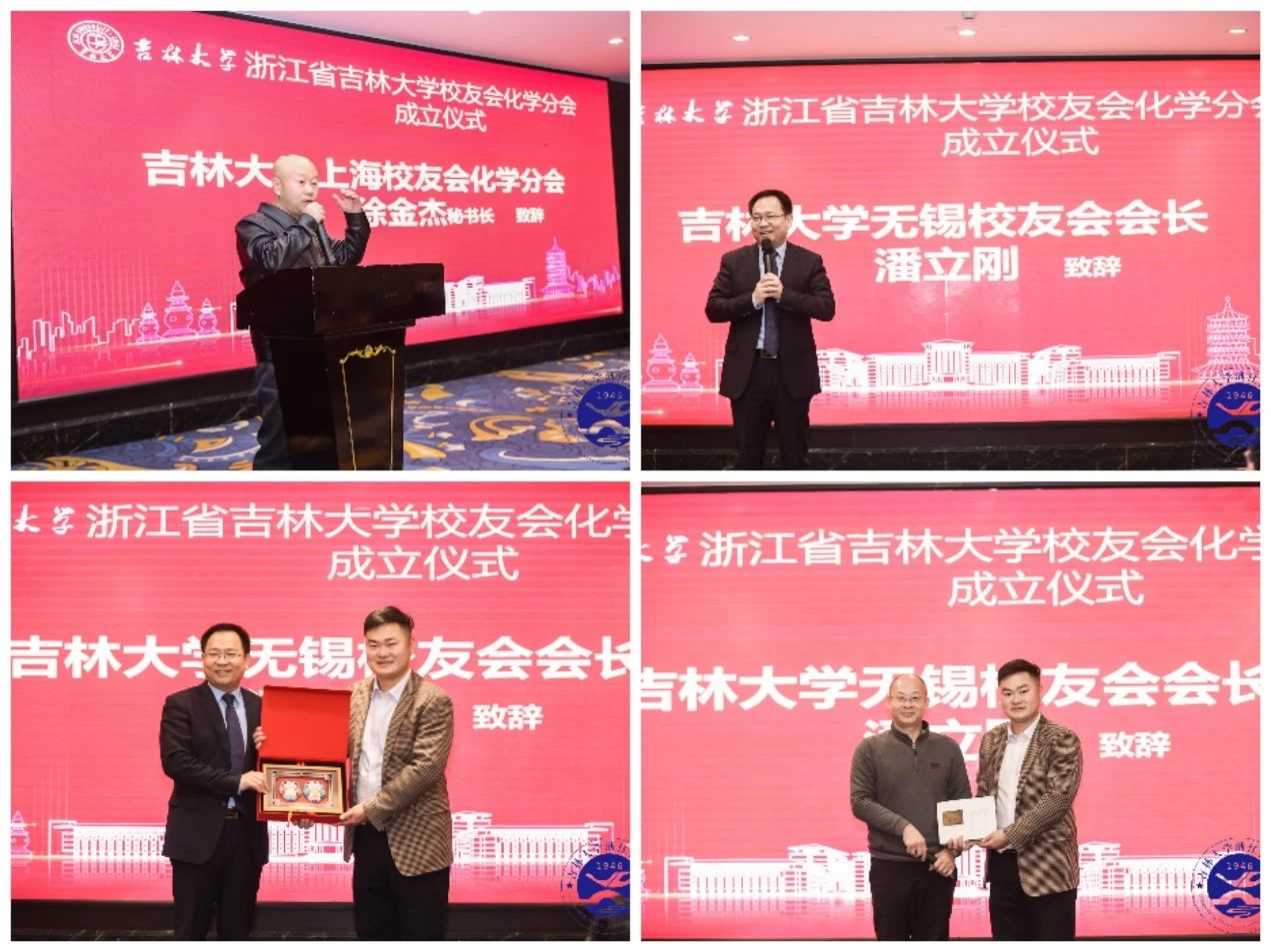 吉林大学上海校友会化学分会秘书长徐金杰、无锡校友会会长潘立刚、常州校友会副会长吴贵新先后向浙江省吉林大学校友会化学分会的成立表示祝贺并赠送了贺礼。
