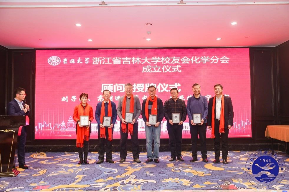 党委书记马本华向浙江省吉林大学校友会化学分会名誉会长沈家骢先生、金钦汉先生颁发聘书(高明远、牟颖代领),并向两位先生致敬,向化学分会顾问宁德宽、刘子阳、高明远、高长有、邵春能、竺亚斌等颁发聘书。欧洲杯