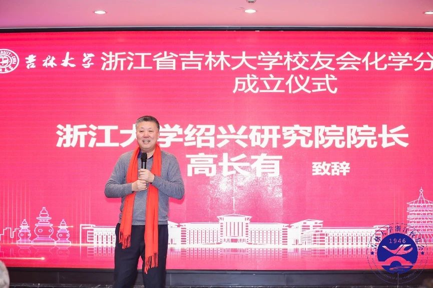 浙江省吉林大学校友会化学分会顾问、浙江大学求是特聘教授、绍兴研究院院长高长有在致辞中回顾了自己在吉林大学化学系的本硕博求学经历,以及与恩师沈家骢先生的师生缘和深厚感情,表示将始终密切关注吉大化学学科的发展,并祝愿母校和吉大化学学科更好更强发展。