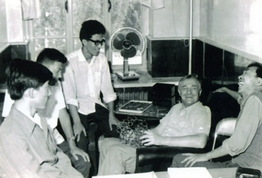 图4 1984年,徐如人与来自德国汉堡大学无机化学研究所的博士后梅迪乐讨论问题