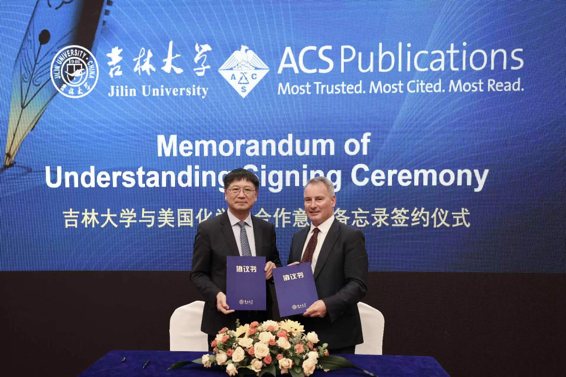 签约仪式由吉林大学研究生院院长、超分子结构与材料国家重点实验室主任孙俊奇主持。ACS出版社高级副总裁Sarah Tegen博士,战略合作伙伴关系高级总监Amy Lam博士,出版人兼副总监 Ophelia Han和June Tang博士,吉林大学超分子结构与材料国家重点实验室、欧洲杯