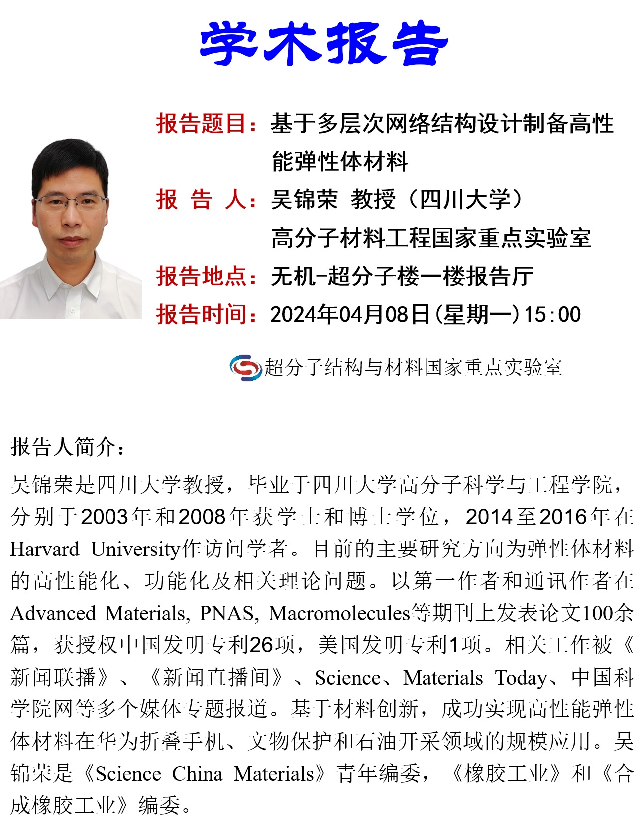 四川大学 高分子材料工程国家重点实验室教授