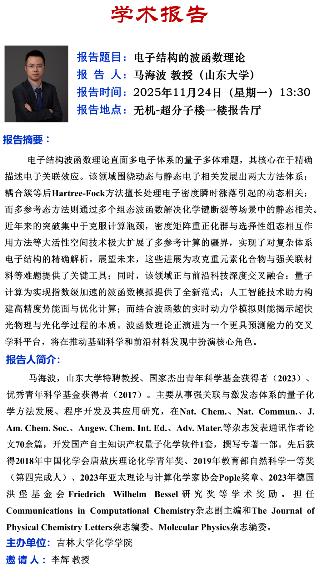 中心校区 无机-超分子楼一楼报告厅